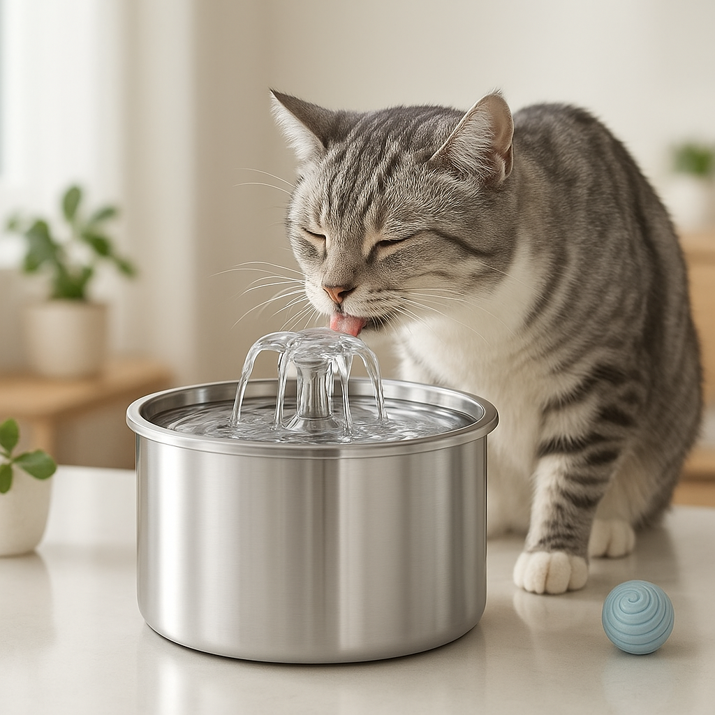 The AquaKiki Stainless Steel Pet Fountain gives your cat exactly what their instincts crave - fresh, moving water that signals "safe to drink" at a cellular level.