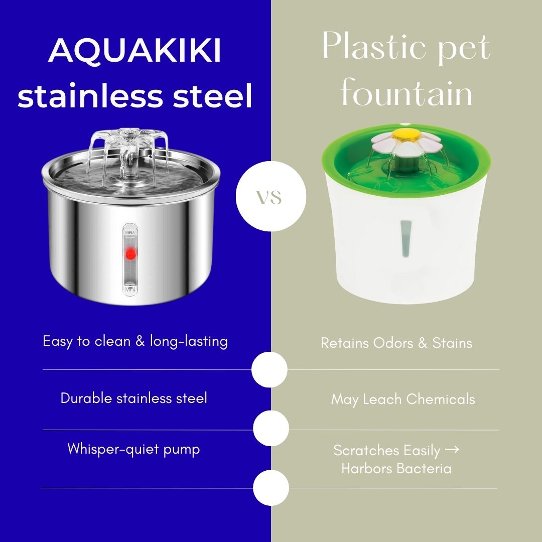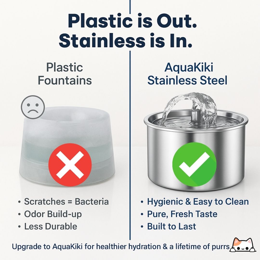 ✓ Medical-grade stainless steel - Never absorbs bacteria or odors like plastic fountains